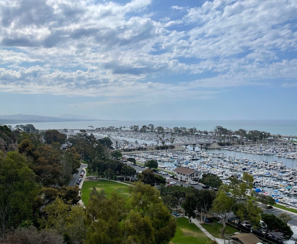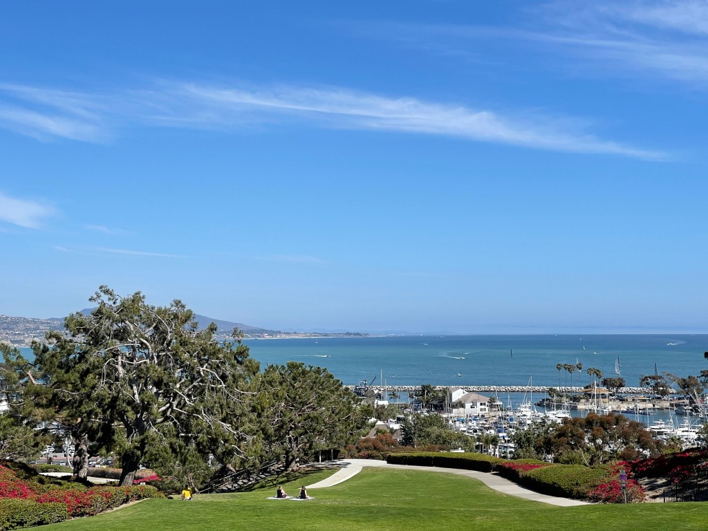 I think a key to finding peacefulness is to find new outdoor activities, such as paddle boarding. Dana Point Harbor provides a plethora of outdoor activities, all while being surrounded by sweeping vistas, wildlife, and the ocean. I particularly like the little parks that dot the cliffs above the harbor that provide nice areas to picnic, walk, and take in the expansiveness of the coastline. As with most treasured areas, I found this cliffside park by accident. The locals enjoy it for concerts, weddings, and of course, the view. The sidewalk meanders down to the harbor, where I discovered you can also walk all the way out to the edge and see the waves crashing near Dana Point.