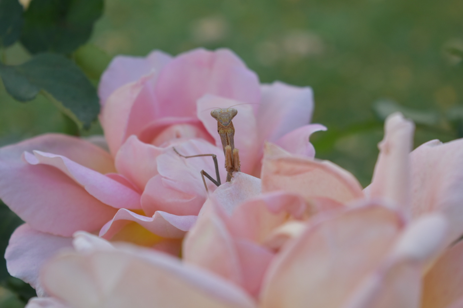 Praying mantis amongst the pink roses, captured using 50mm and 330mm DSLR lenses – for Cee’s Photo Challenges – FOTD.