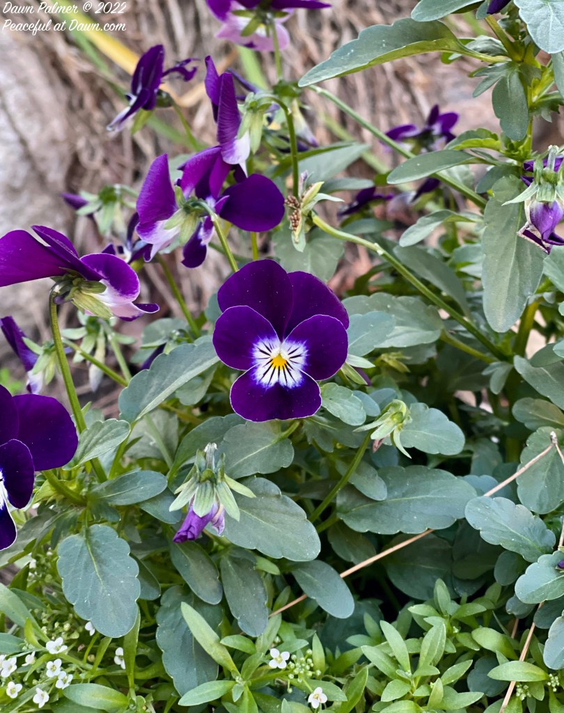 Surprisingly, Southern California had a recent freeze warning, which caused me to quickly research the temperatures that all of my tiny, potentially susceptible outdoor plants and flowers could handle. I wanted to find out which plants had to be covered, so that they would not freeze overnight. To my surprise, violets are pretty hardy and don’t need to be covered. I found out that they are usually the flowers people plant earliest in the spring, because violets can handle colder weather before things start to warm up. So far, my research was correct — my violets are still going strong in their pot outside. I captured these violets with my iPhone 12 Pro Max for Cee’s photo challenge – Flower of the Day (FOTD).
