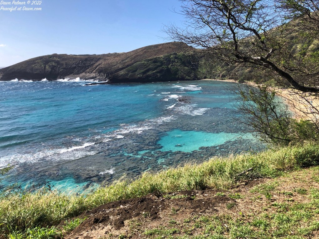 View of one of the most popular snorkeling coves–for good reason!–at Hanauma Bay State Park, Oahu, Hawaii.
