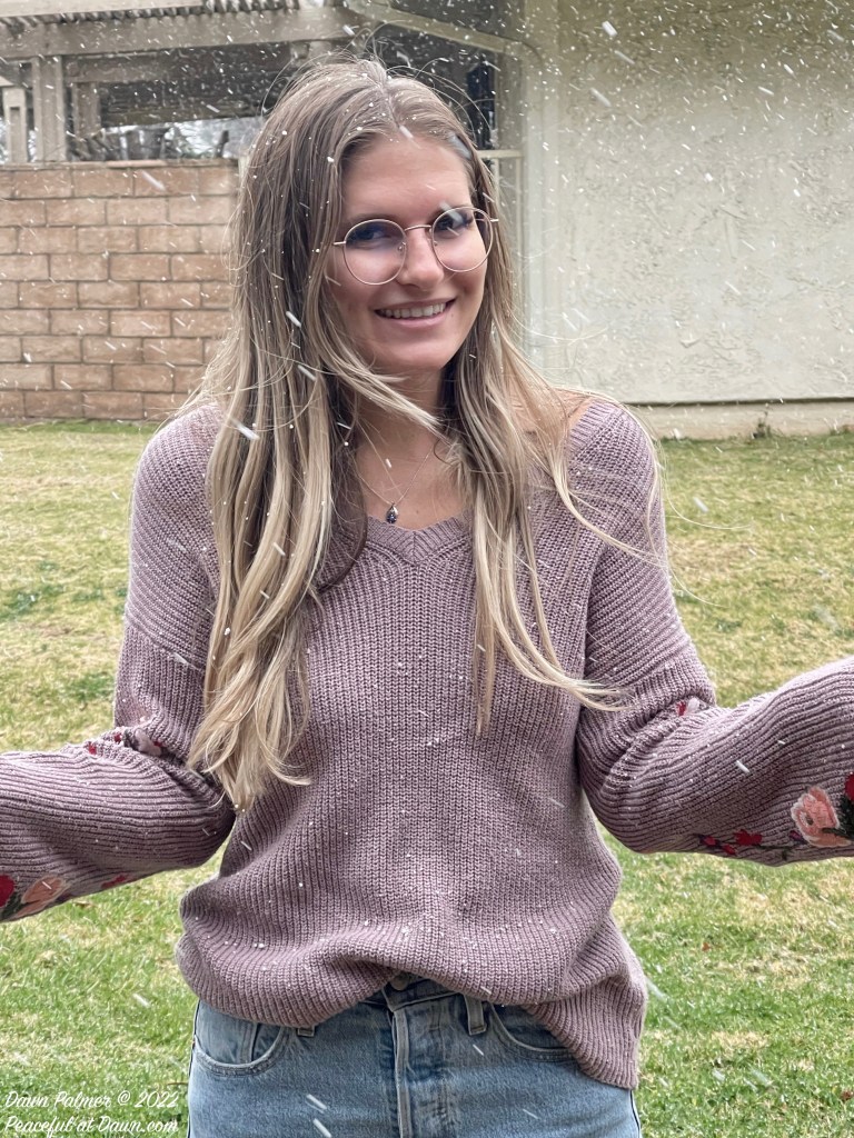 It’s not typically warm here in February, but snow wasn’t expected. It only stuck in the mountains, but it’s really cold here. It’s still pretty! Hope she has a nice visit.