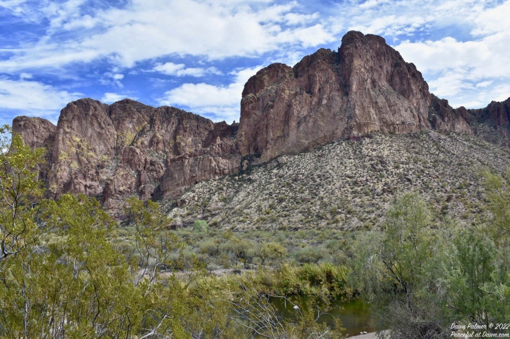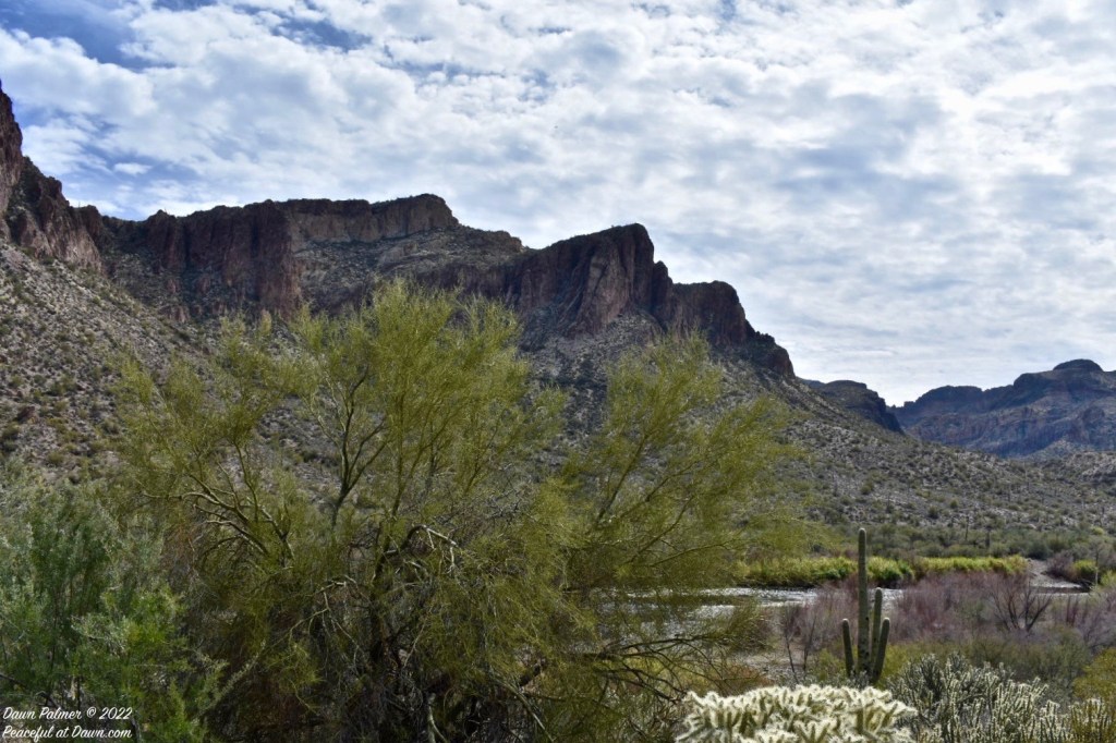 Salt River flows through desert east of Phoenix at the beginning of spring; captured with 50mm DSLR lens.