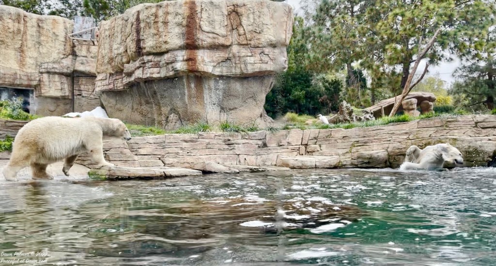 Last year, my husband and daughter surprised me with an annual pass to the San Diego Zoo (yes–that’s why you see so many photos from there!). I hated wearing a mask, but loved the reservation system and the fact that there were no crowds. My favorite polar bears were very active on this day.
