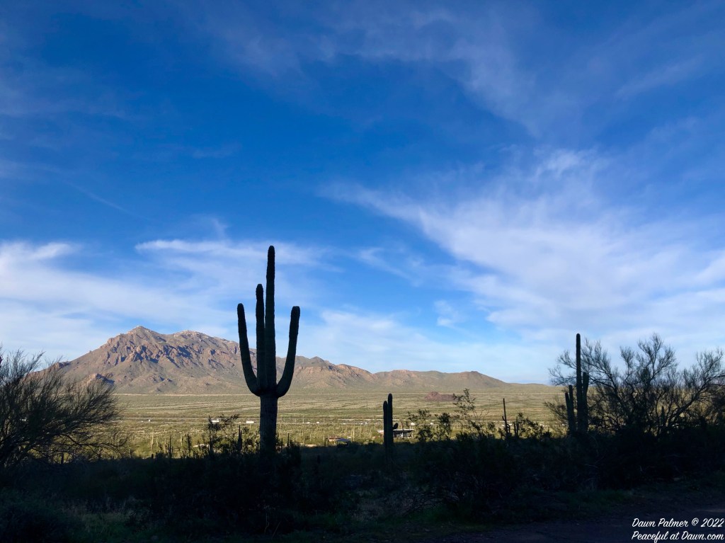 I have also attempted to use light in the background when I am taking landscape photos like this next one. I wanted a silhouette of the saguaro cactus with the vast desert behind it. The cactus was in the shadows, but it worked out, highlighting both the desert landscape in the sun and the cactus in the shadows at the same time.