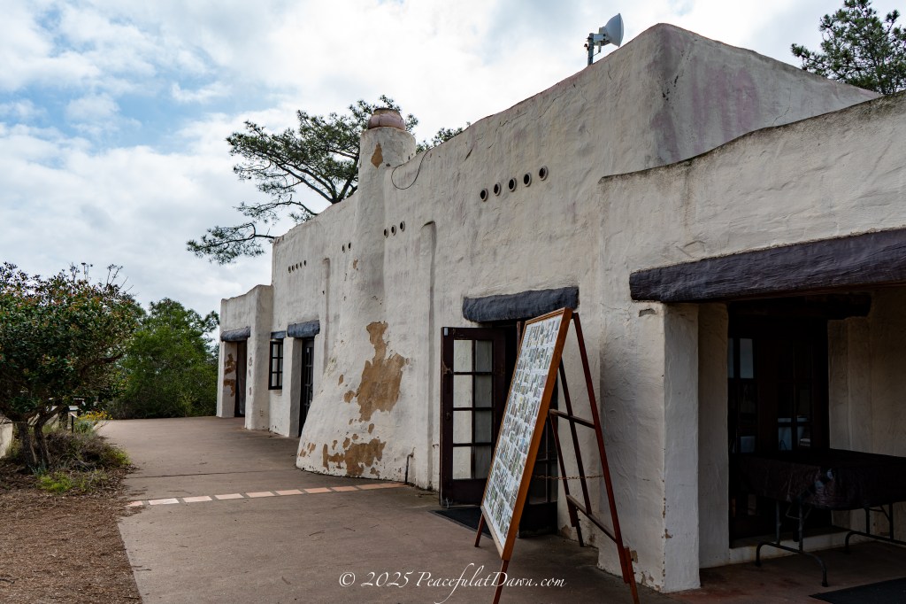 There is an old 1923 Torrey Pines Lodge at the top of the hill after entering the park. Travelers used to stop at this lodge — actually a restaurant despite the name — as it was along the old road to San Diego before the freeway was put in.