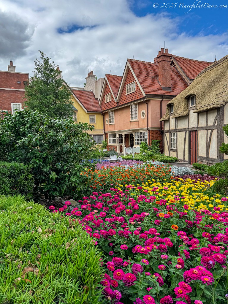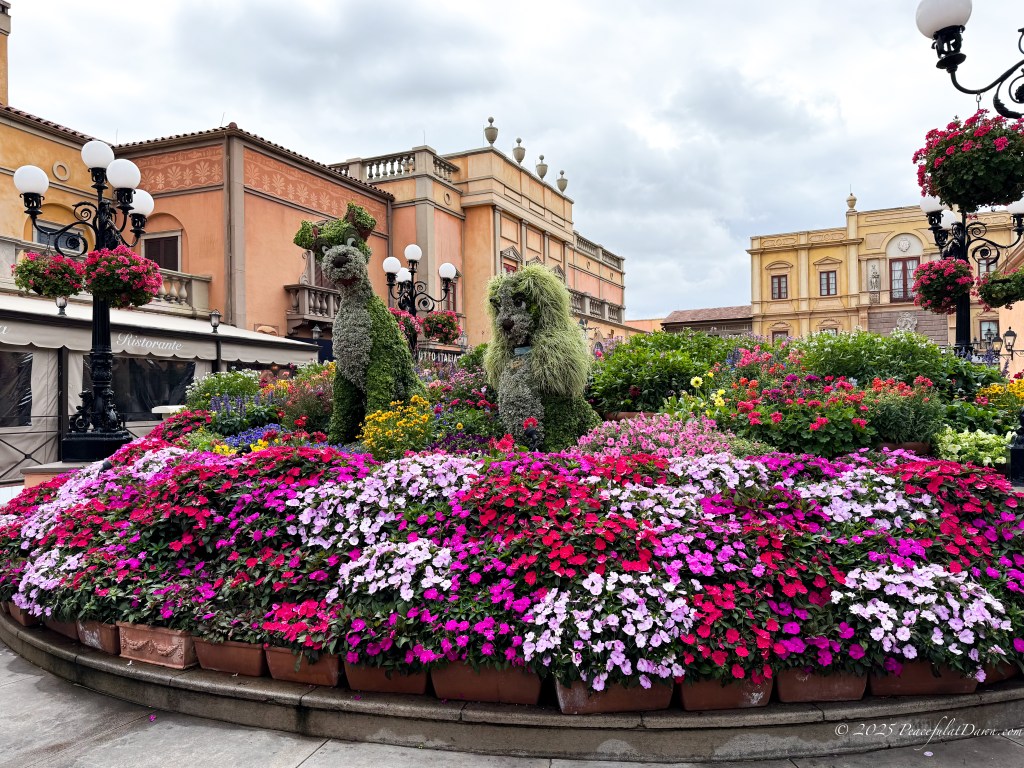 Lady & the Tramp topiaries in the Italy section of Epcot featured more pink flowers. While I have seen these flowers in the US, they said they only used these flowers if they could also be found in Italy. (Sounds like another trip idea so I can find out firsthand.)